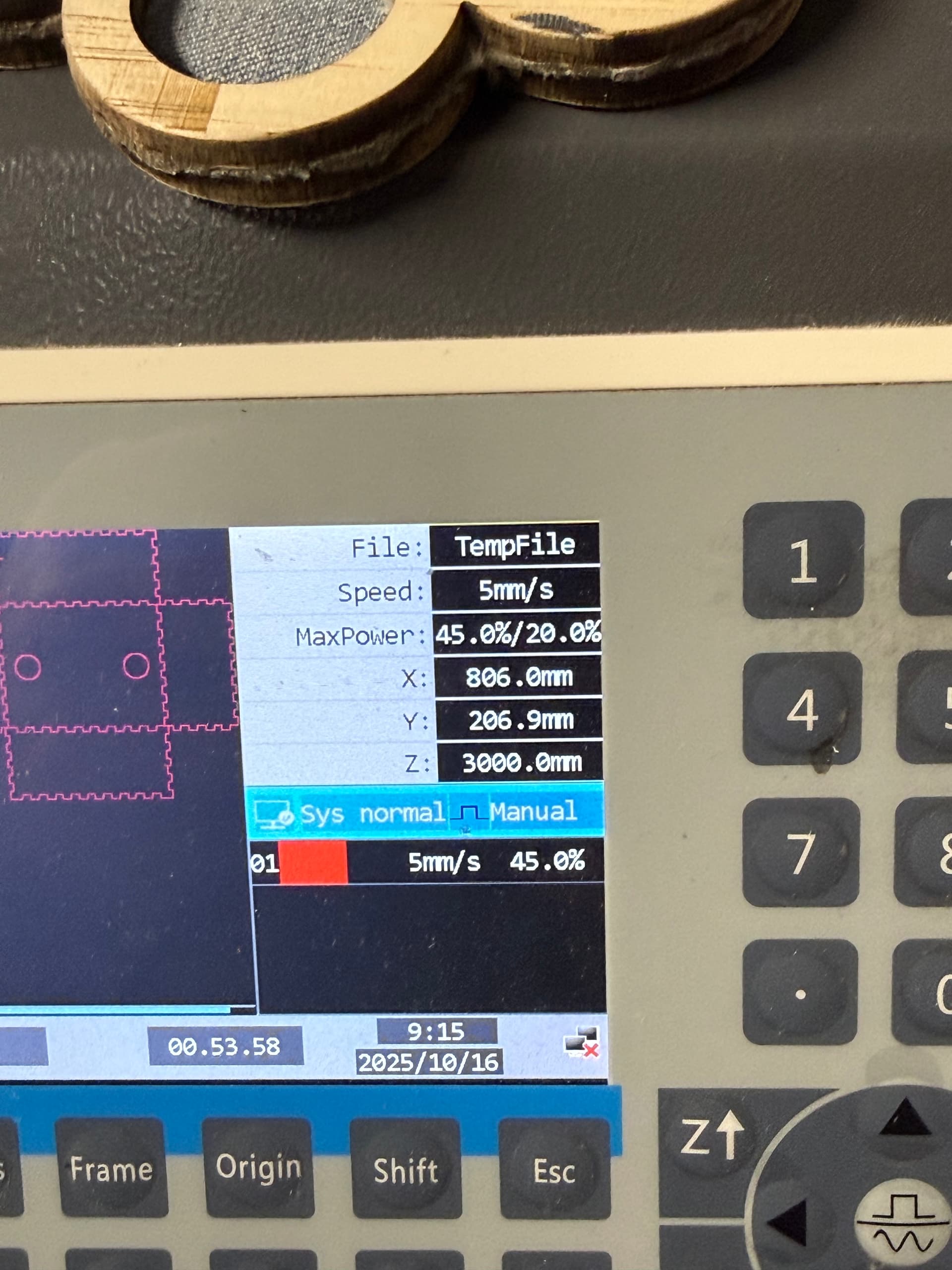 Hello all! Typically, I don’t come to ask for help because I know it all. I think I just found a flaw in my design and I need your help. I’m cutting six mil plywood and I’ve noticed before but now I don’t have time to notice I needed to cut, but my settings in light burn that I send to my Comptroller are different than what my Comptroller says usually in the way of the minimum power. Any help is much appreciated 3 1/2 years of this stuff and I still don’t know it! J, I know you’re never busy, help a brother out!!! ![]()