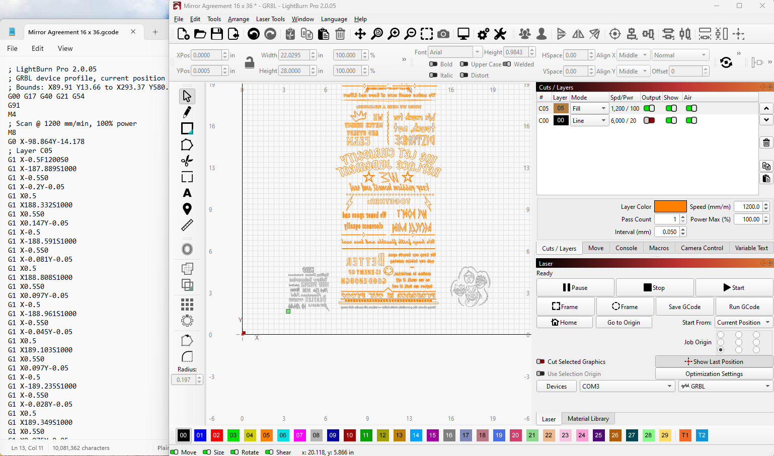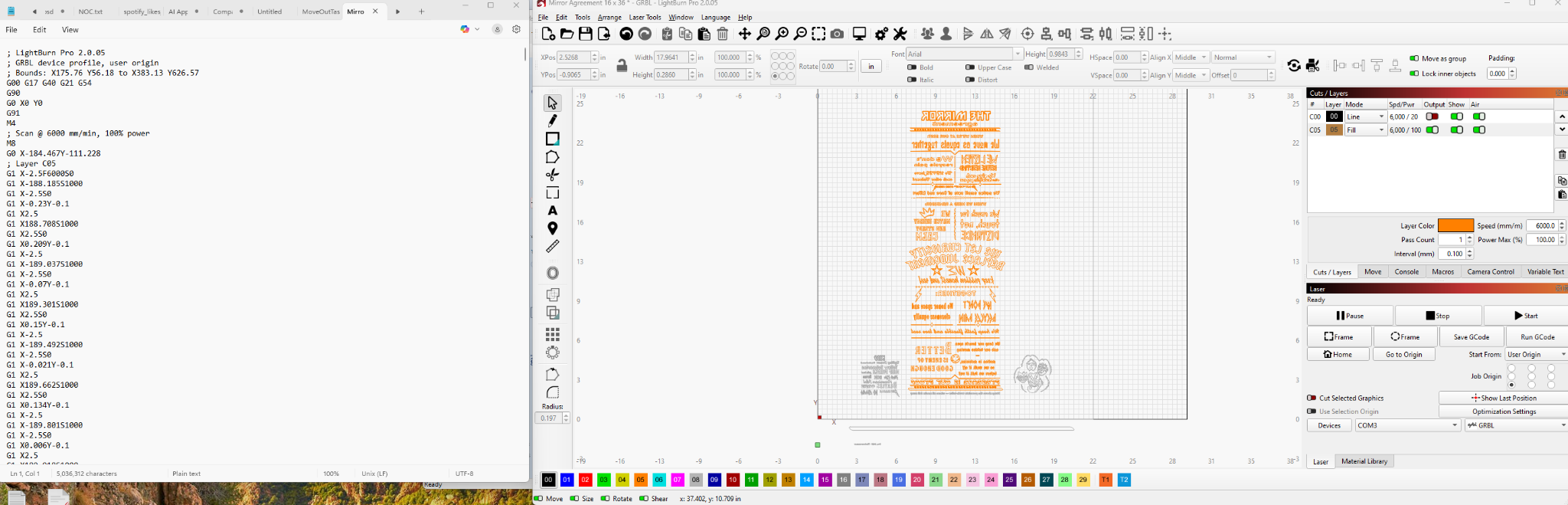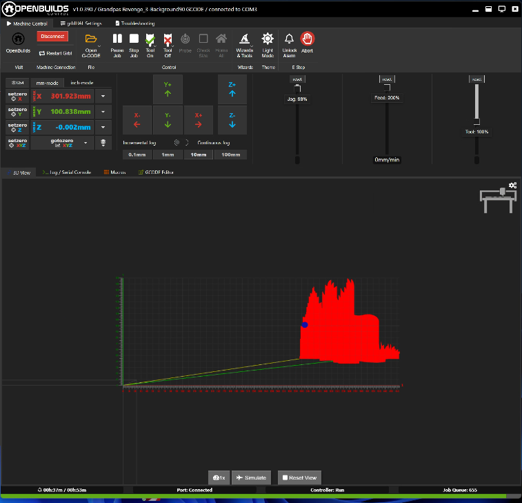 I tried to use LightBurn to design and run the job but I cannot STAND the jog controls built into the software, then again coming from OpenBuilds Control, its like going from a BMW to a Pinto IMO.