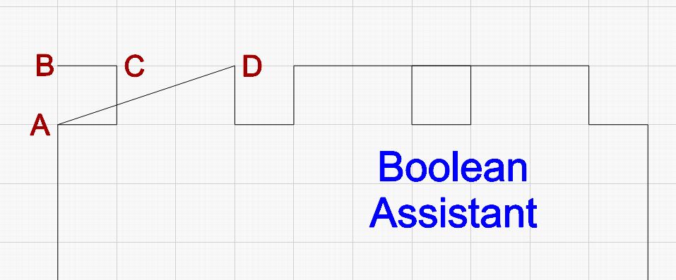 In Image #2, we see what you are claiming. It makes what appears to be a wrong choice. But still the small square is not part of the A-B-C-D vector and gets ignored. We have to somehow bring them together. Otherwise, Lightburn does not see the small square as part of the A-B-C corner. In other words, it has no way of knowing whether to go to A-C or A-D with the Snip.
