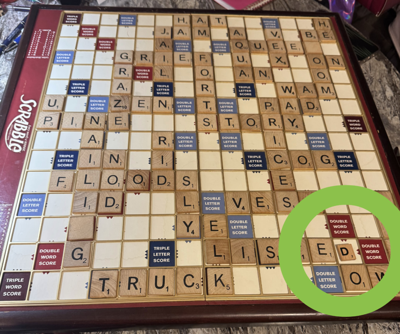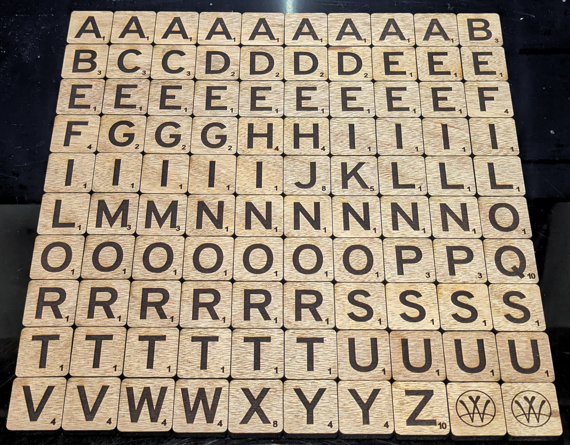 They asked if I could make a replacement letter. Well, sure, I can certainly make a replacement letter. Of course, mass-market Scrabble tiles are end grain*, and if I made a replacement, it would naturally be face grain. I also don’t have the letterforms used on the real game tiles, so barring a scan-and-trace, that would also be a mismatch. Of course, I’d naturally want to cut, engrave, and mark them with my lasers, which wouldn’t match the original printed tiles. (Competition tiles can’t be engraved, as cutthroat Scrabble players would certainly “read” them when drawing, but my parents would like the engraved look… also they’re currently using that tiny little D, so context, heh.)
