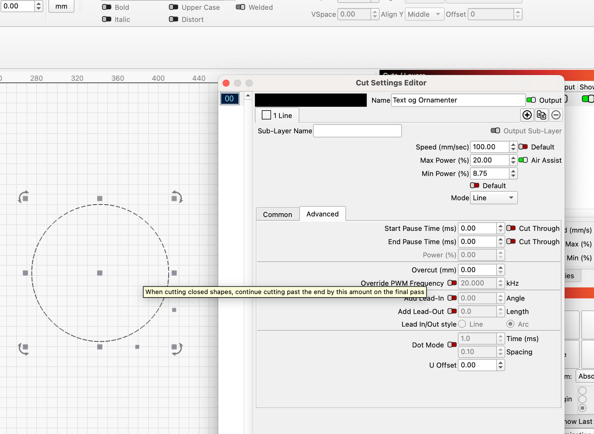 That is pretty vague. Set the Origin where, and what start point? First question: Are you using Absolute Coords? Second: Does your laser have Home switches?