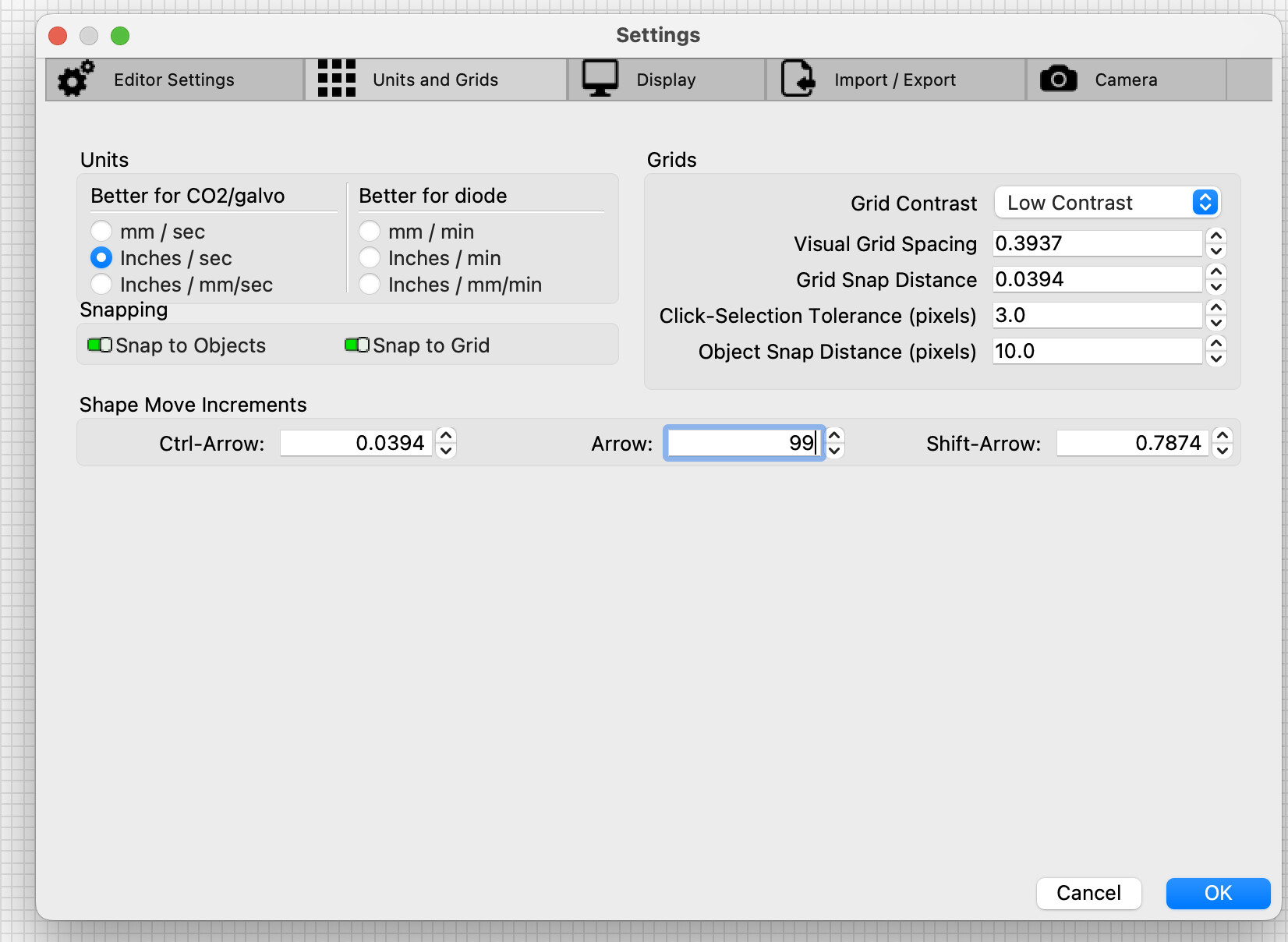 Works normally for me. MacOs Sequioa 15.6.1, Lightburn 2.0.3