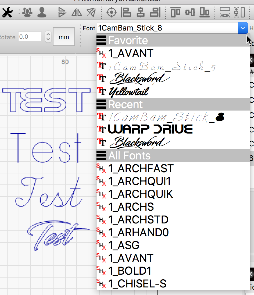 Once completed, the fonts will show in the LightBurn font pulldown.