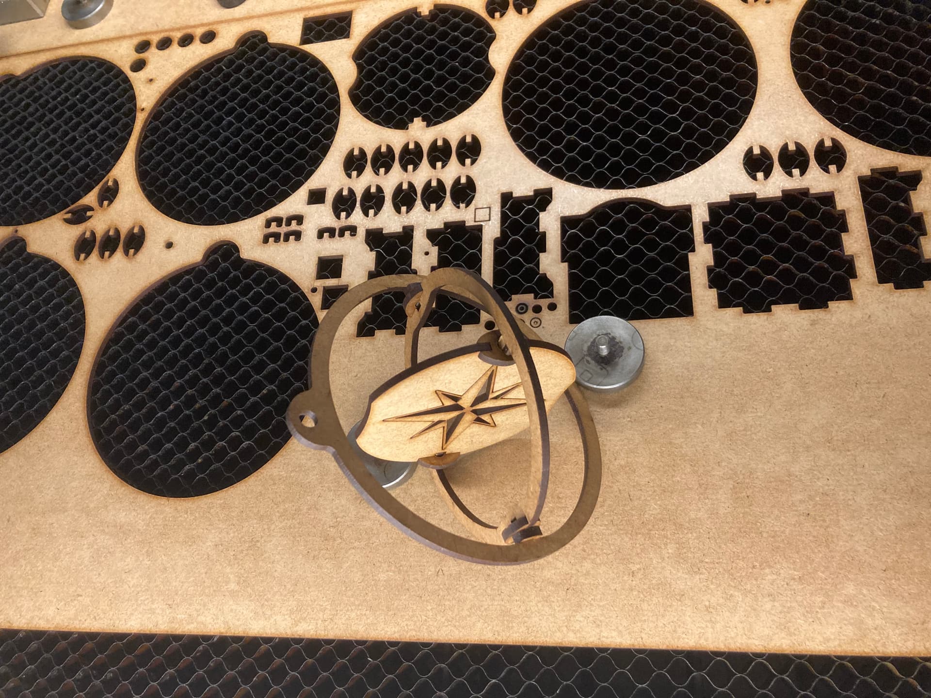 During assembly, the rings must be pressed slightly oval to be able to fit the next ring in, there is enough flexibility in MDF for that. As bearings and spacers I use the small parts, they should be tight.