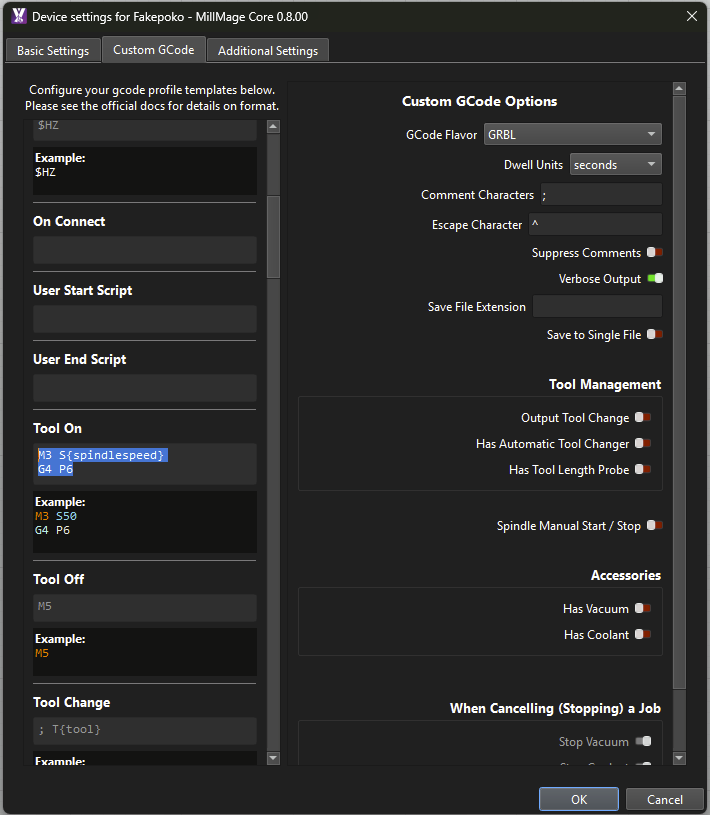 I think I’m continually disliking MM more and more. I typically use Gsender but thought I would try MM. I created a simple tool path. When starting it the spindle goes down. The spindle does not turn on but plunged the bit into my wood without turning