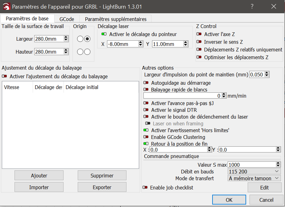I am currently using Lightburn in the version : 1.3.01 LightBurn 1.3.01, built mar. 2022-12-13 with the following laser machine Totem twotrees.