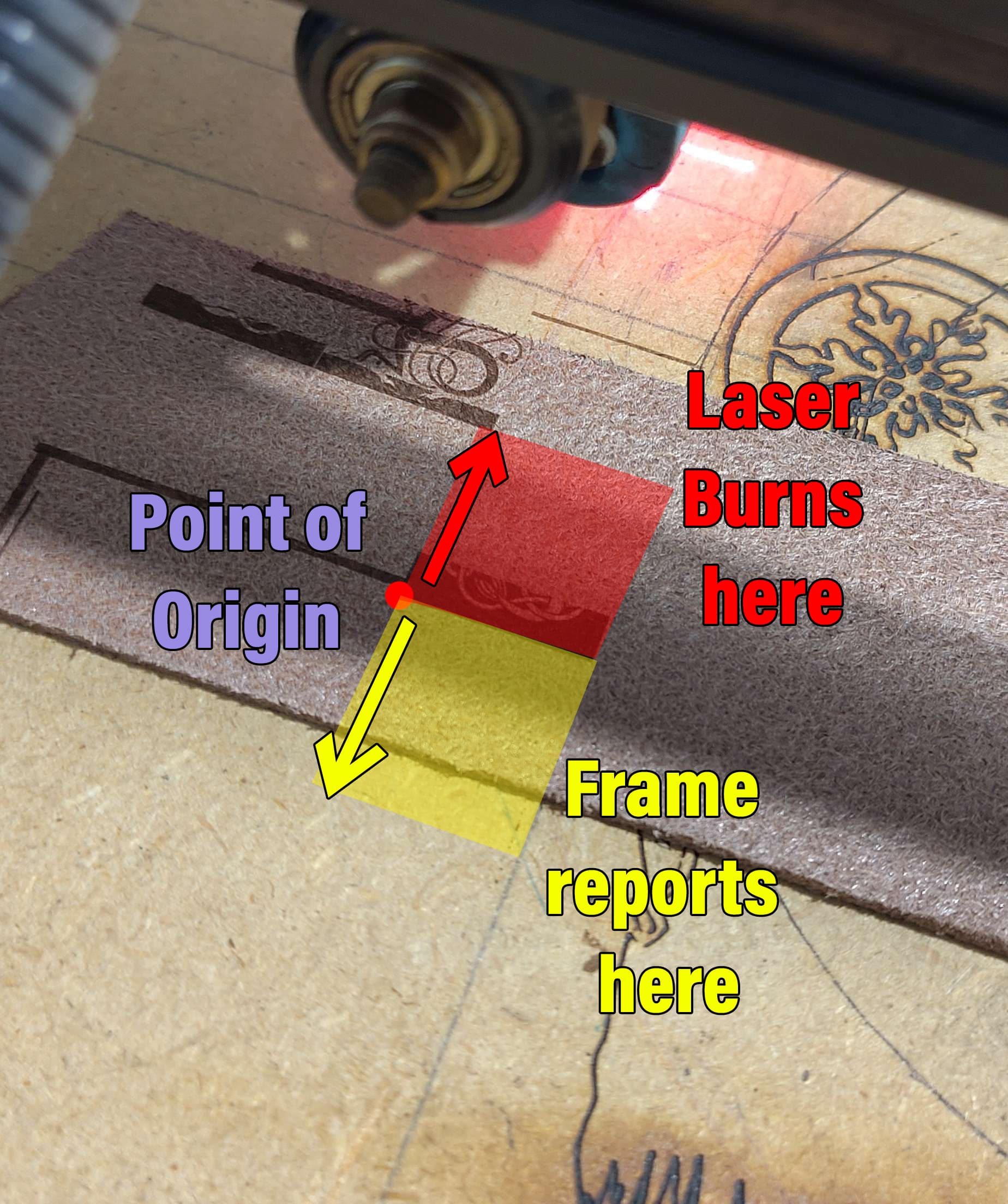 When using the “Frame” button, with Start Position “Current position” and the Job Origin top left, the frame draws where I expect it to burn. But when I press Start, the burning area is shifted toward the top and burns in an opposite direction (and location) than what the “Frame” reported. This is causing some major headaches to target where to burn.