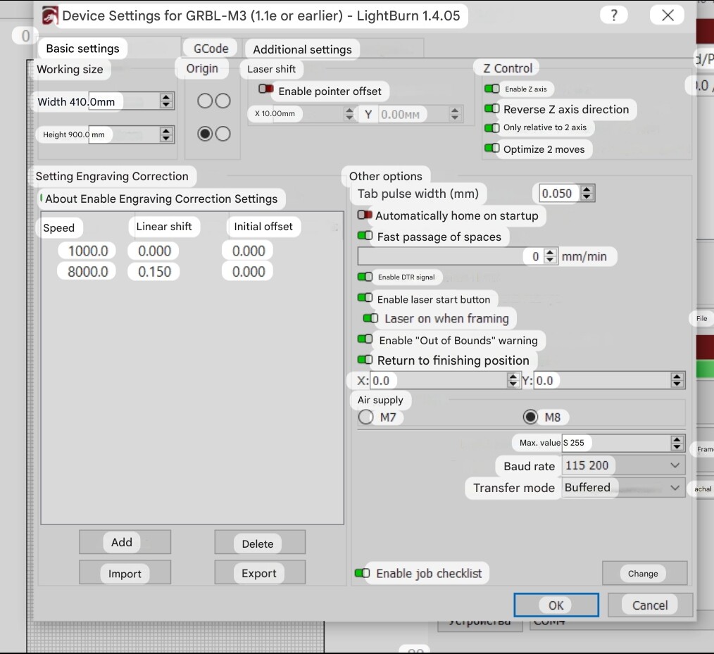 If you go to Laser Tools > Device Settings, go over to the Basic Settings tab, then look in the right column, what do you have set for the ‘Laser On When Framing’ percent?