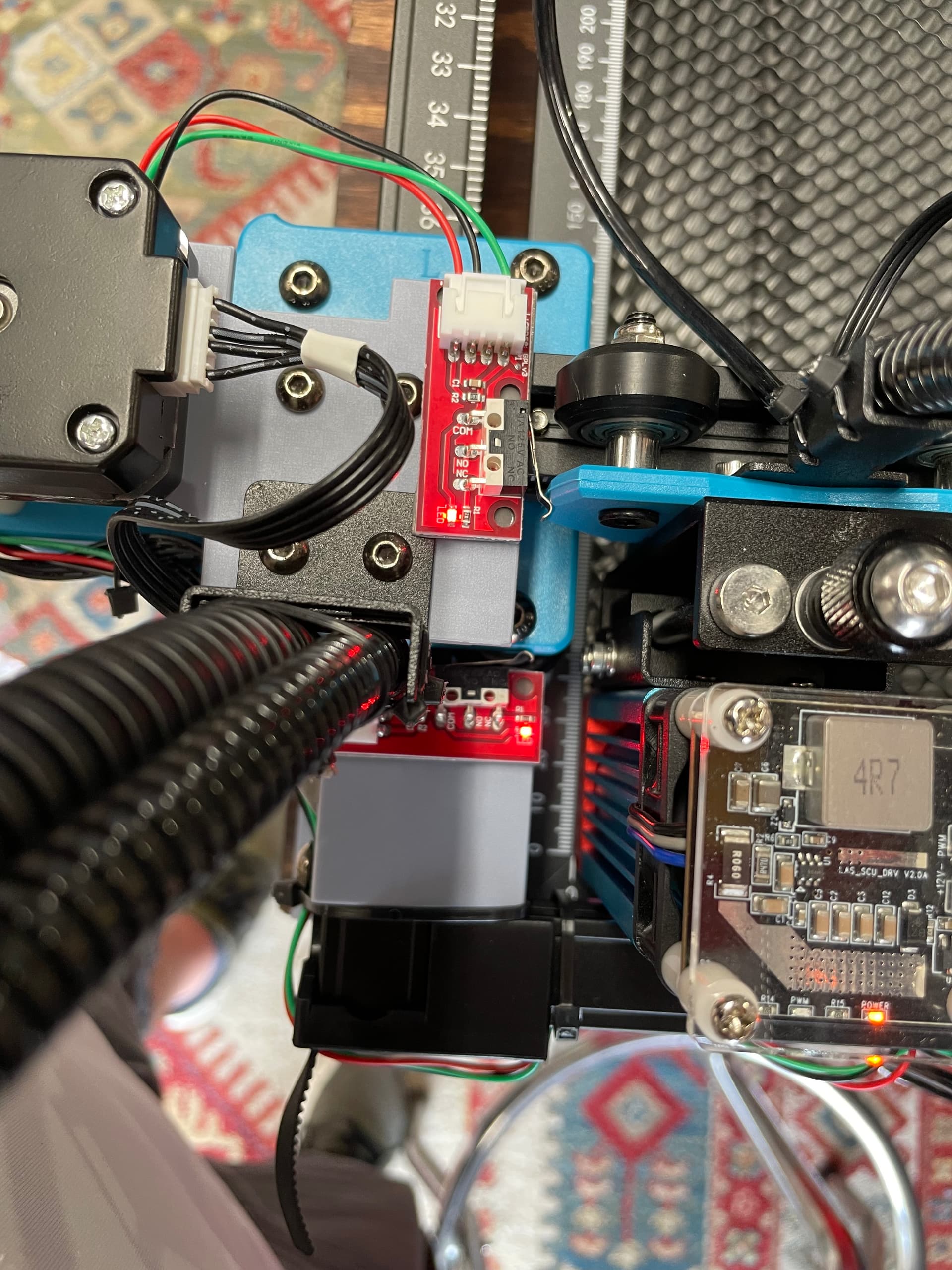 This is a Ruida setup with limit switches… Red are home, green limits.