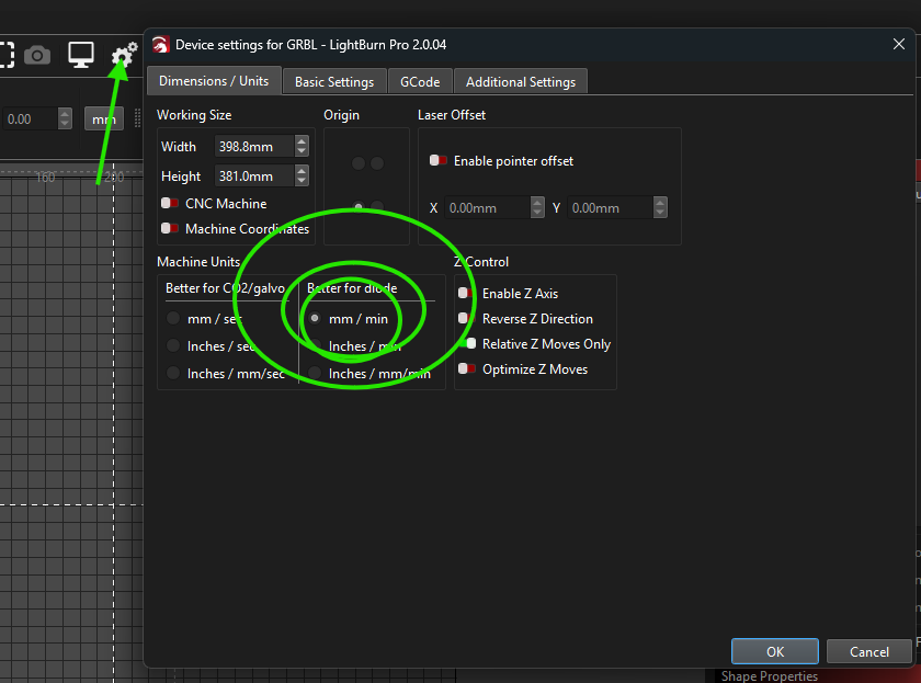 Hoping someone can help! After upgrade to 2.0.4, my work area was reset to just over 11 inches, instead of 17 (which is my actual work area size). When I line things up and frame the project, everything is fine… when I click START, the head moves left and grinds against the left side of the frame, then moves all the way to the right and grinds against the right side… continues this until I force it to stop! I tried changing the work area size to 17, but that didn’t help. I’ve tried using User Origin and Current Position… have tried starting from center, and also from lower left corner… neither does anything to help. Prior to the upgrade, projects would burn just fine.