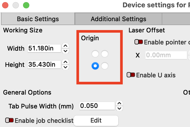 Go to your device settings and change your origin to the front left. Your origin is set incorrectly, it shouldn’t be in the front right. The red square in your screenshot tells me you have it set to the bottom right.