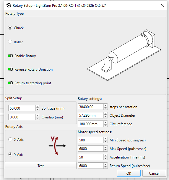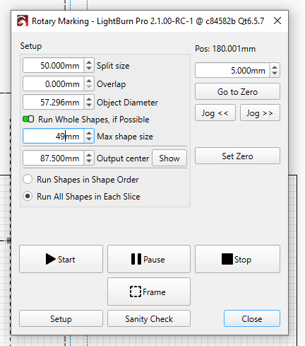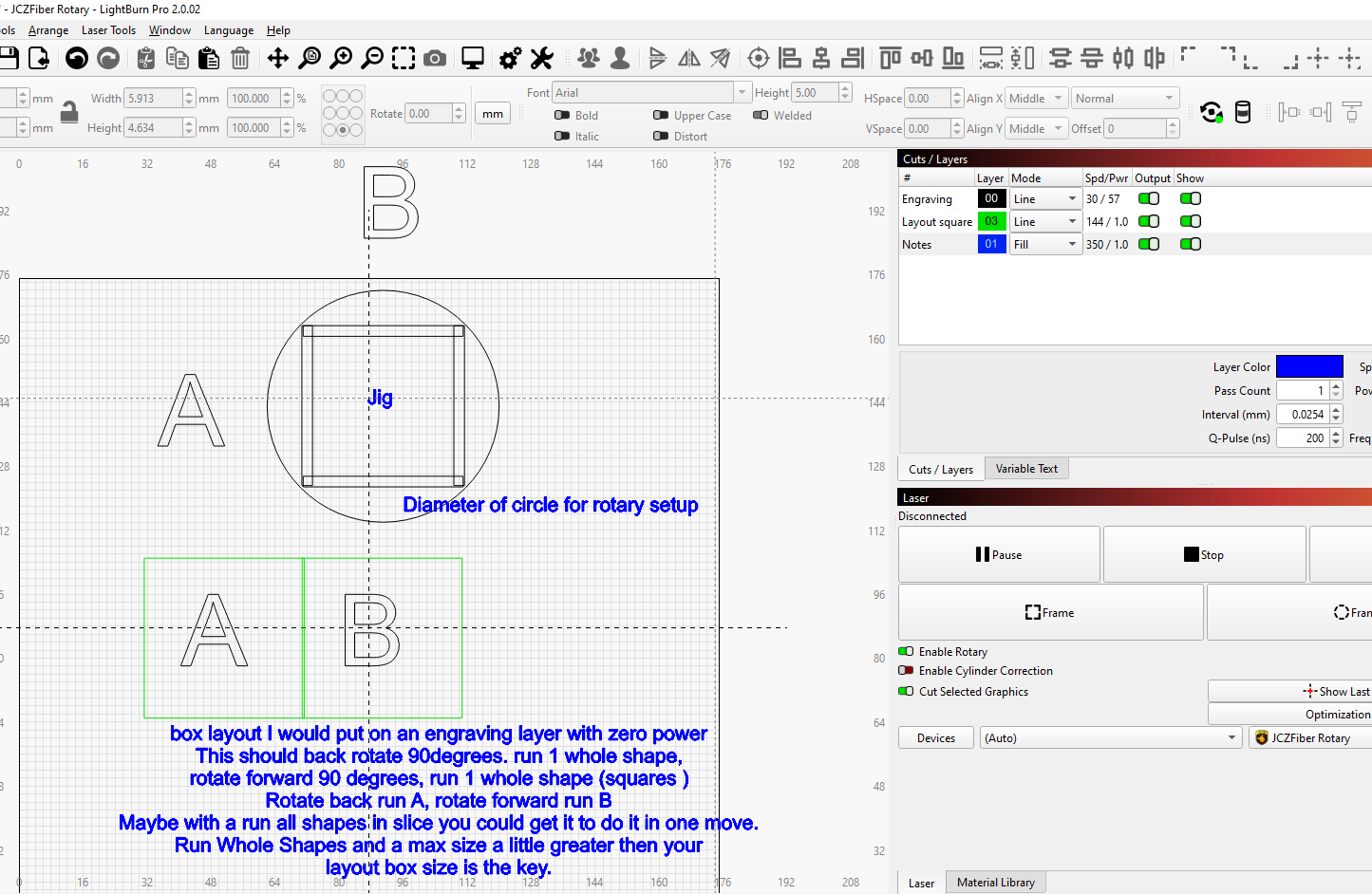 I have a machine shop and want to use my Cloudray QS-50 rotary axis to engrave two different things on two sides of a part in one operation. The part is rectangular and I want to engrave some text on one side and a logo on a side that is 90 degrees from the first. I have a fixture designed that would hold the parts such that both sides would wind up at the same height when rotated 90 degrees but I can’t see how the software can do this.