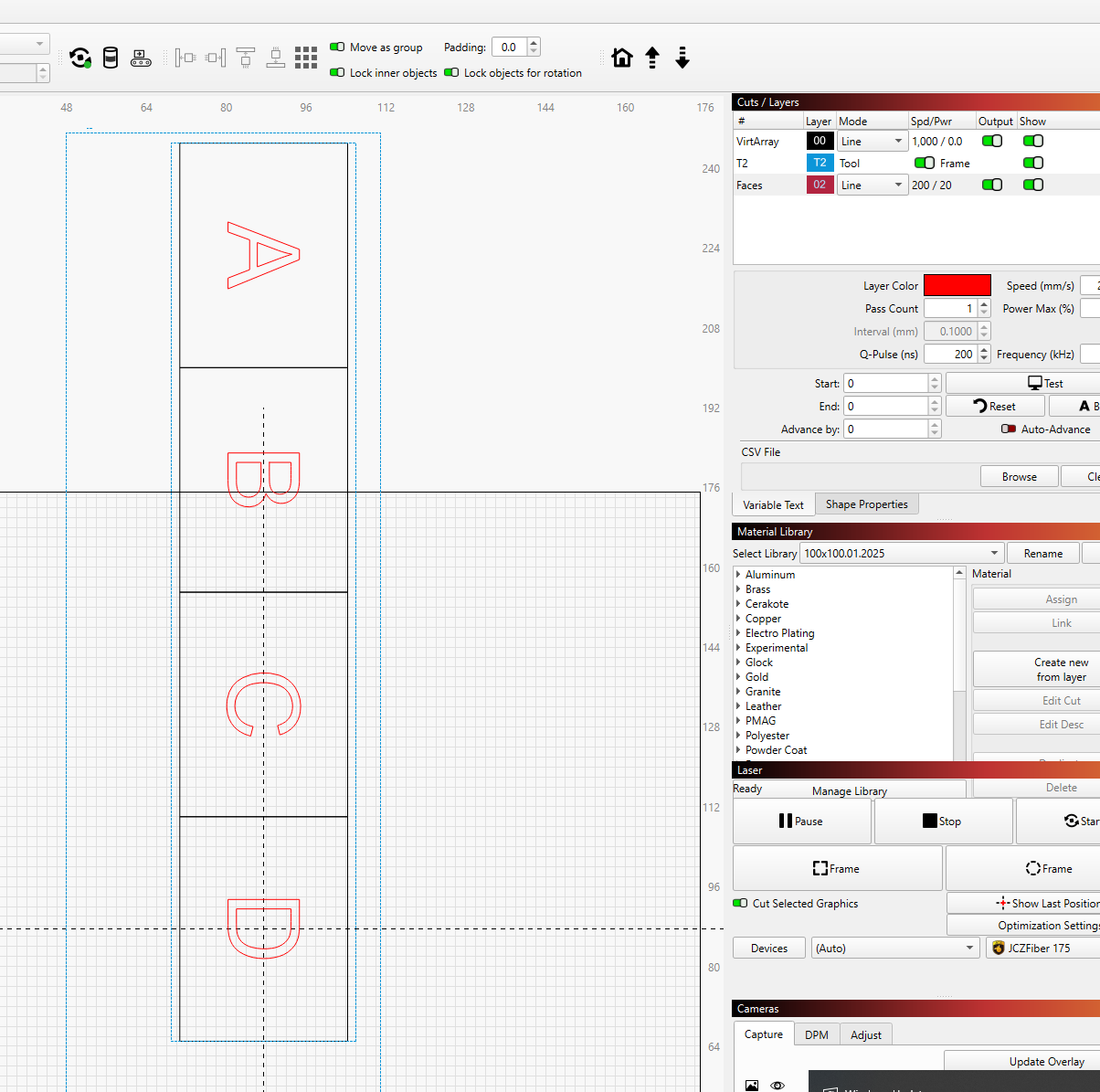 Still, it seems like there not being a more direct way to do this seems like a big hole in the features of the software to me. I come from a CNC/Manufacturing background and wish to use the engraver in making parts. It would be nice if they could add this capability more directly. Maybe the option to engrave different layers in the positions of the repeat marking menu would be a way to implement it without changing things too much?