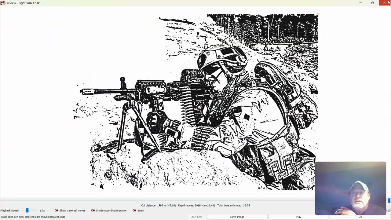 Here is an example of similar art where I leveraged the LightBurn Image Trace previously, with a little better source image.