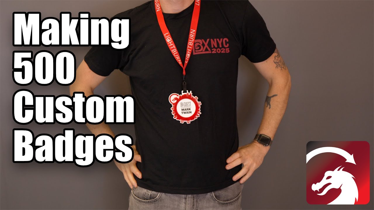 With 500 attendee badges to make for LBX 2025, it was time to put all the machines we have at HQ to practical use. In part one of our three part our series on the making of our LBX badges, we take you through the process of laying out graphics in LightBurn using Tool Layers and Grid Array, then cutting hundreds of badge blanks.