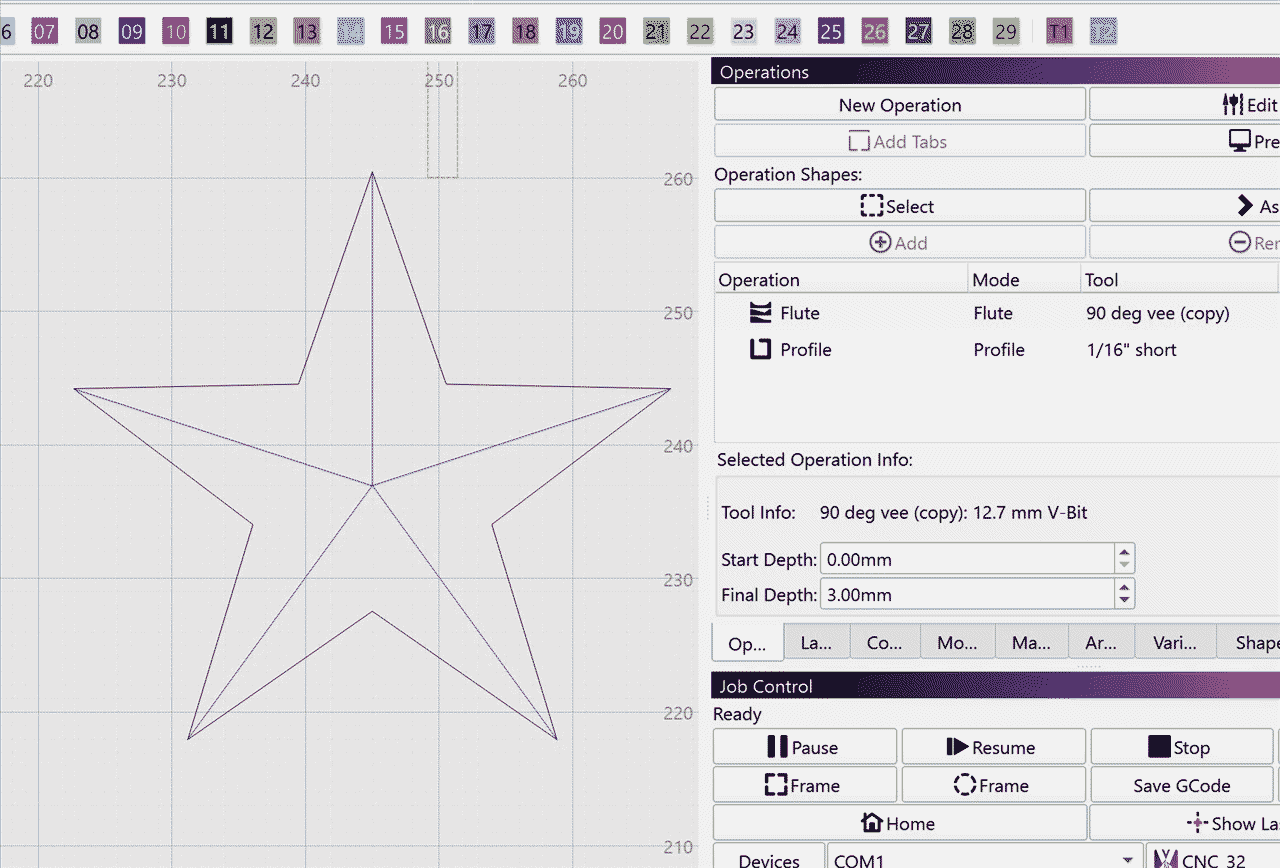When the operation is selected, you see the assigned shapes appear with a thicker outline: