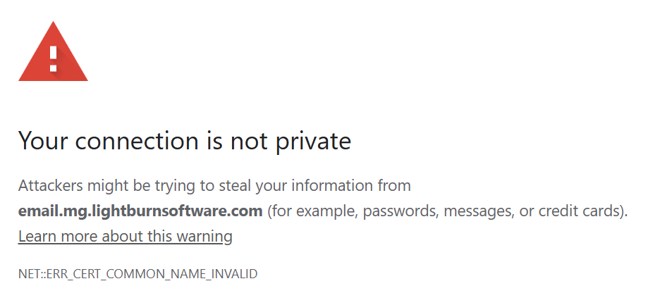 Attackers might be trying to steal your information from email.mg.lightburnsoftware.com (for example, passwords, messages, or credit cards). Learn more about this warning