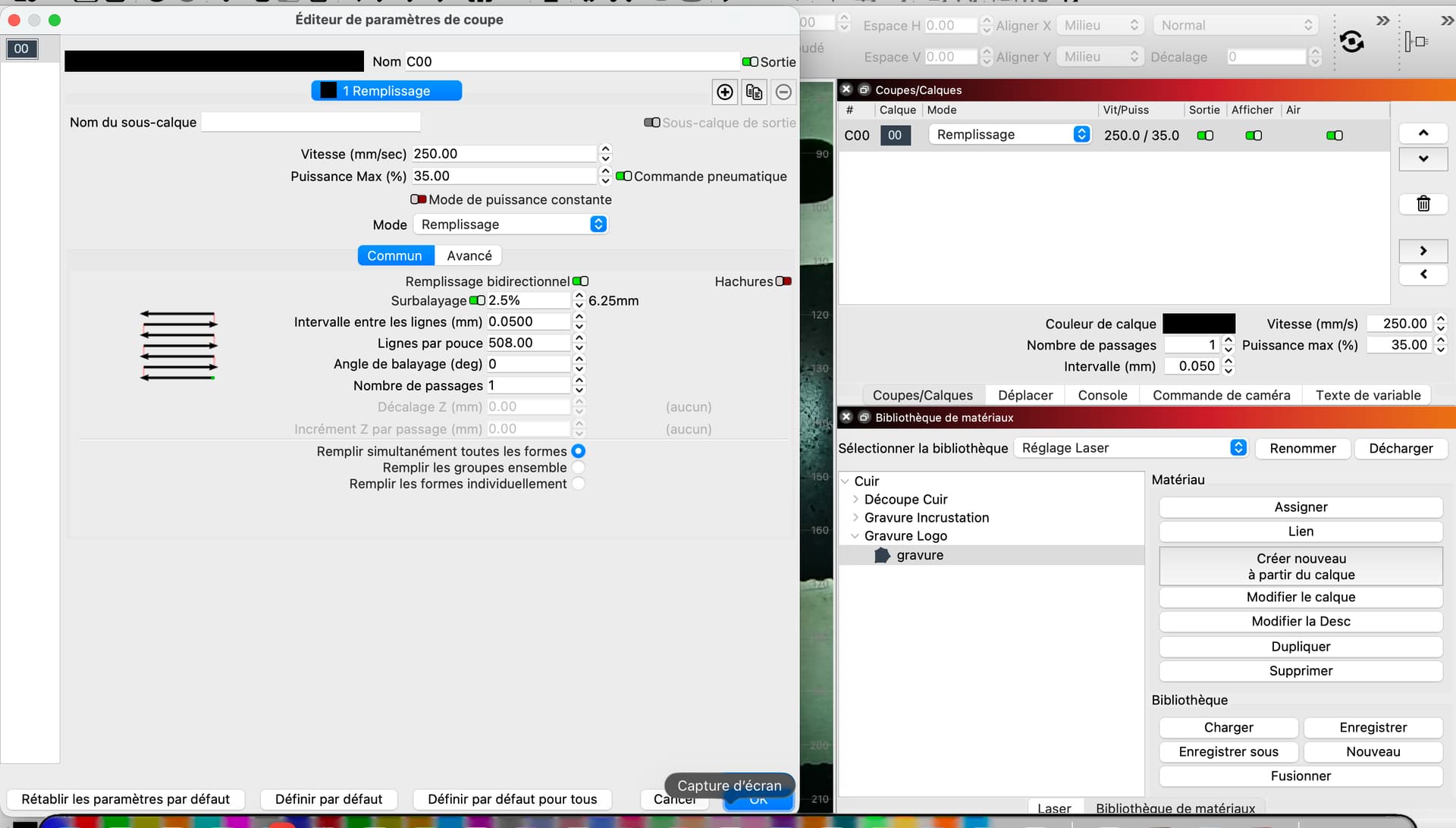 indeed, the clear engraving being mono-directional And the other, with defect, is bi-directional. Both engravings have the same setting except for this mono or bidirectional option