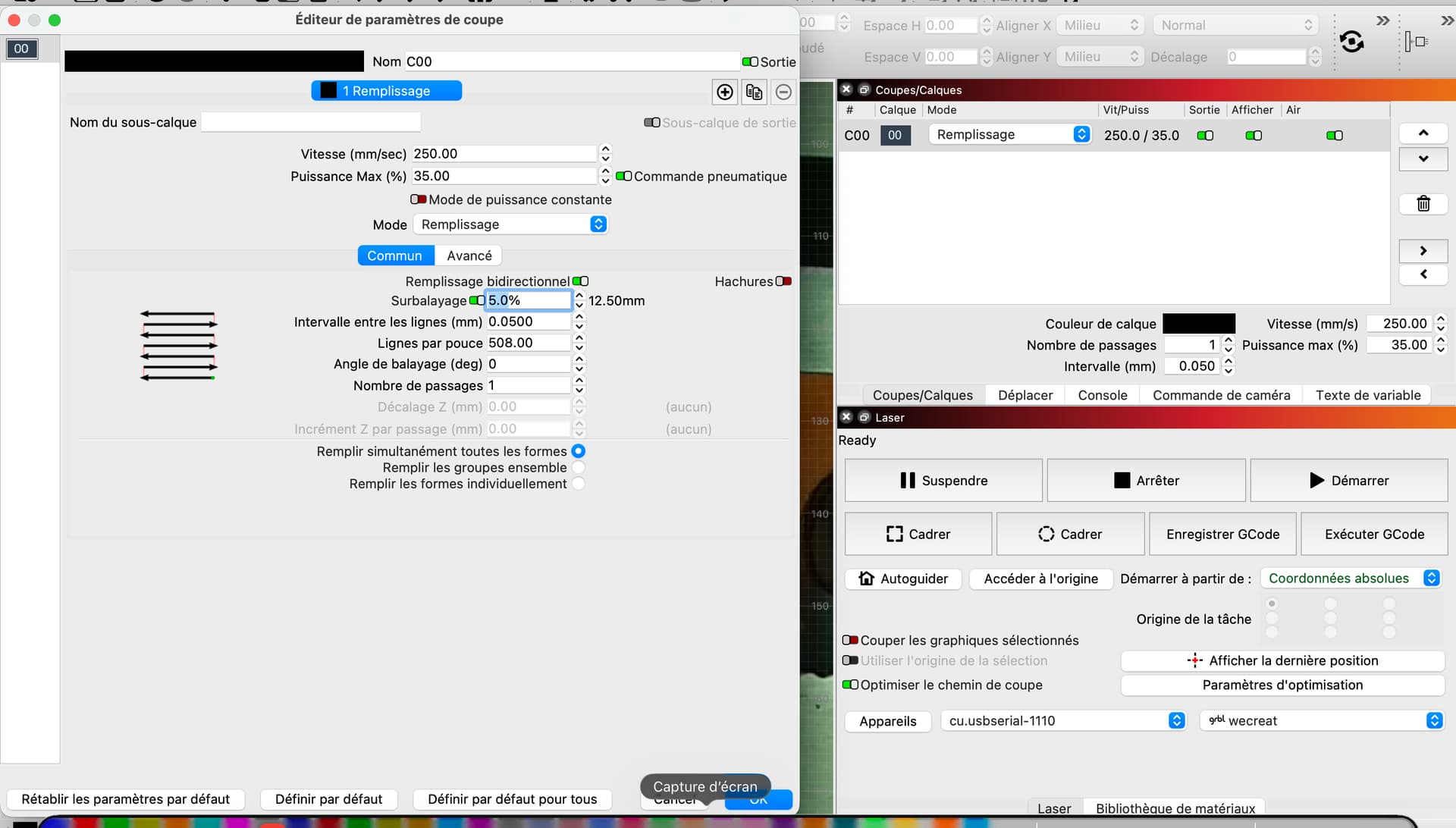 First of all, a huge thank you Tim and Aaron ! Indeed, the advice you gave me allowed me to solve the sharpness problem of the bidirectional engraving. I applied a line offset of 0.25 mm for 250 (mm/s) and increased the overscan from 2.5% to 5%. I will still refine the settings slightly, but the result is already very good.