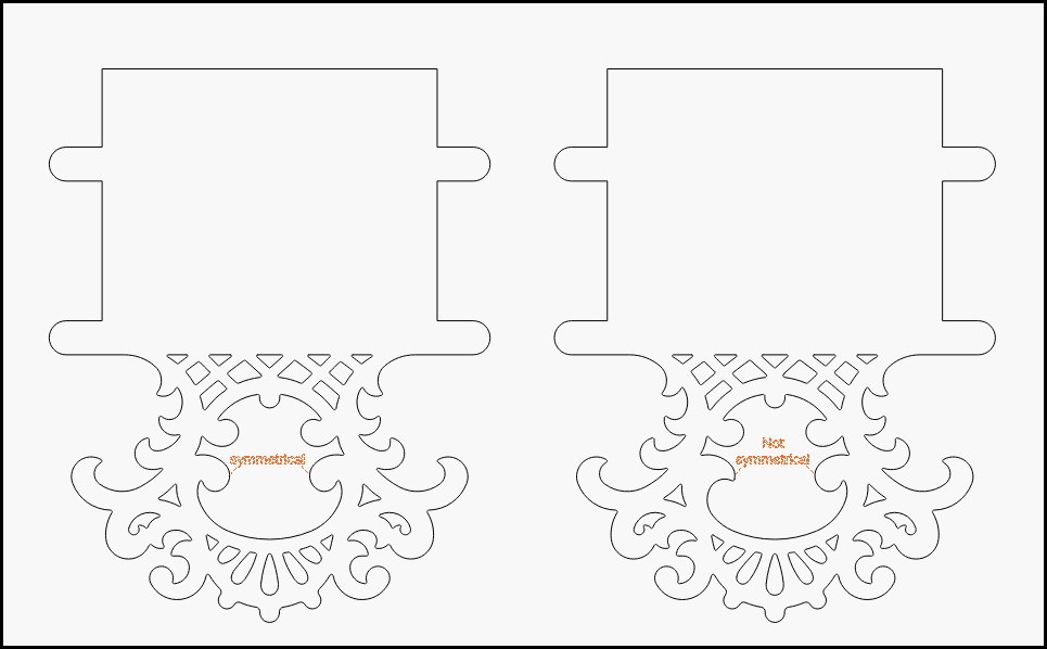 There are 2 versions. One has the inside shape symmetrical - the other isn’t symmetrical per your provided shape. This isn’t the exact size as yours. I rotated your shape about .25 degrees to build 1/2 and mirror it.