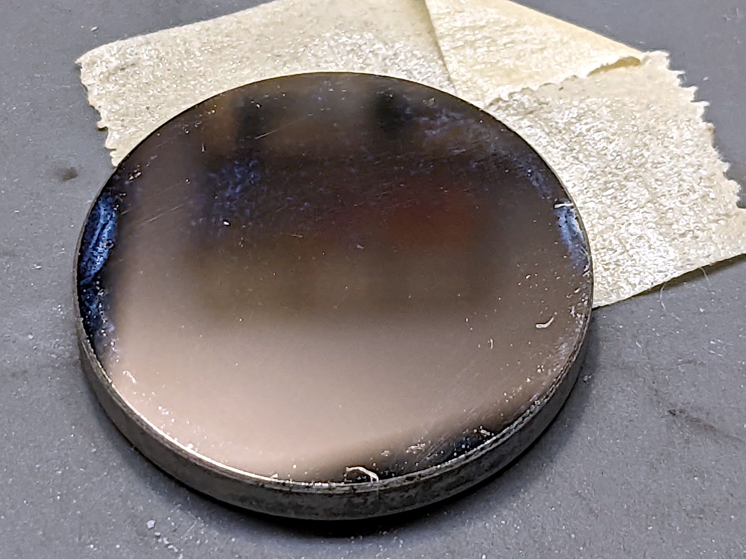 To assess your tube status, much less power and/or time is required. Set your pulse to 20ms and adjust power until you have a light brown mark on M1.