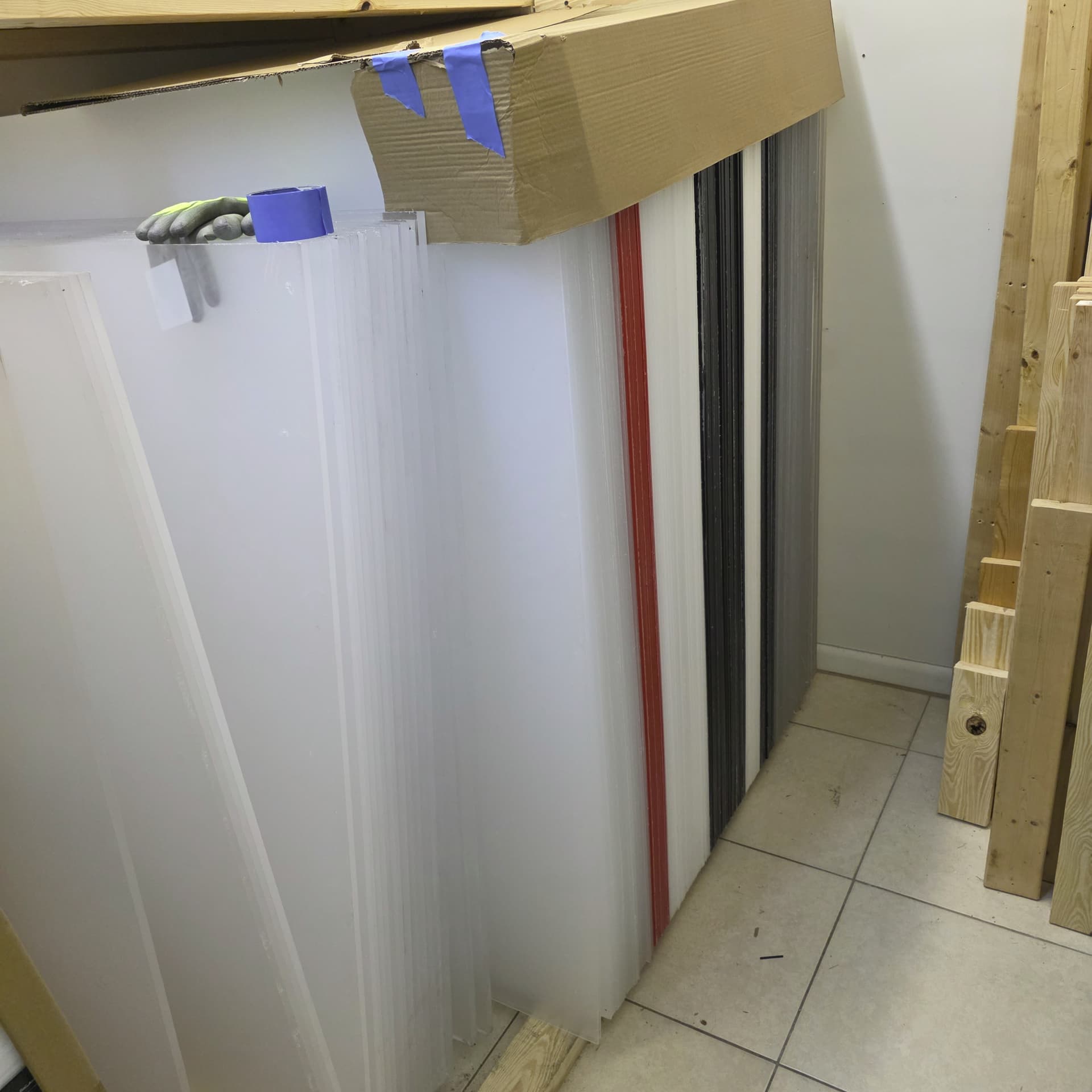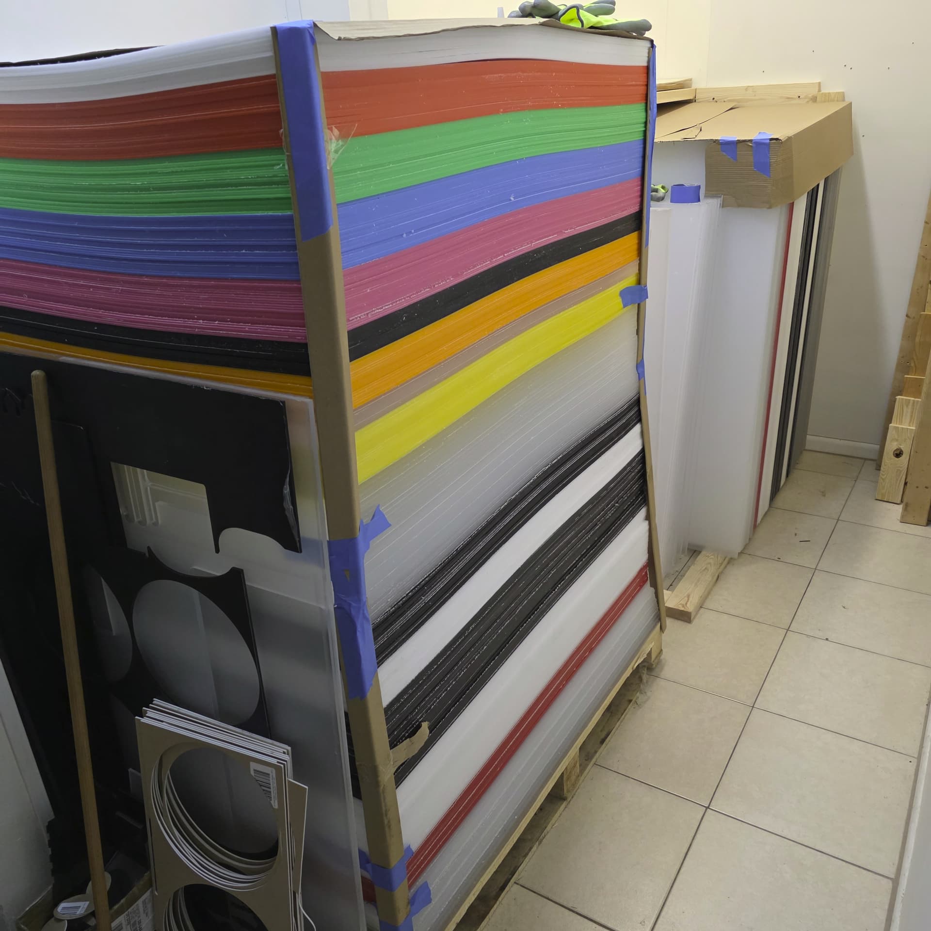 Been busy lateley… but did get the acrylic shipment in 12,000 lbs, 405 sheets