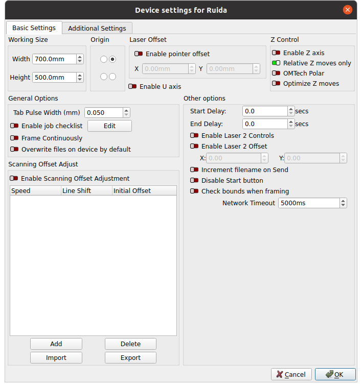 Apologies I’m not sure what I’m looking for here. In the device settings I see PWM rising edge valid=TRUE for the X-axis but FALSE for Y, Z, and U axes. I assume these are the Ruida settings; could you clarify where the stepper drive settings would be located?