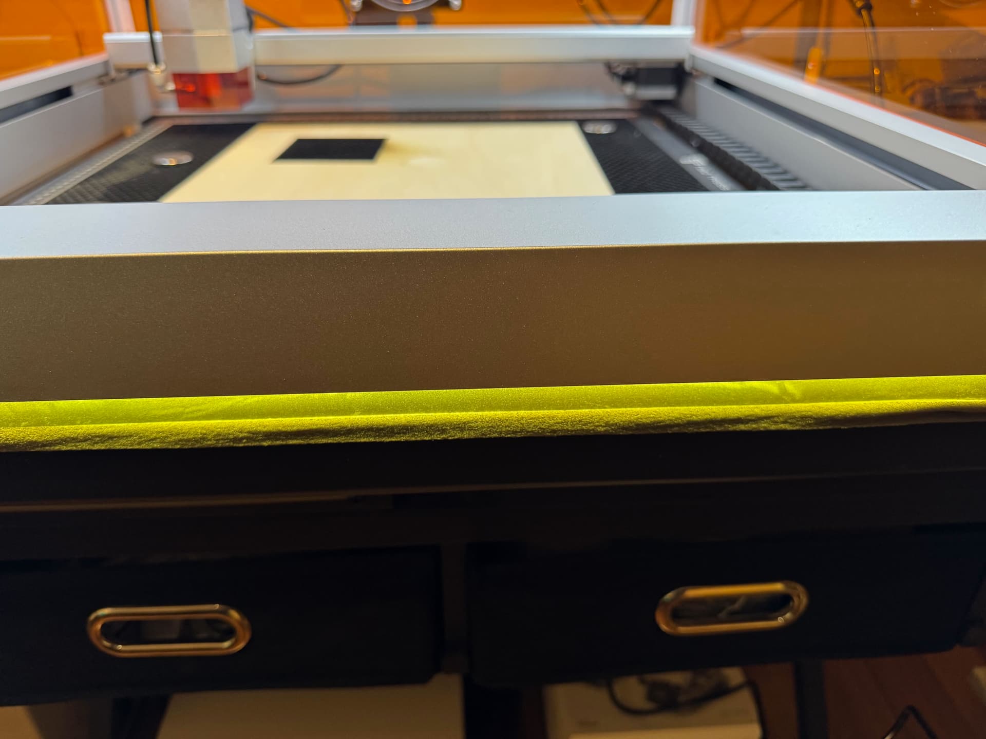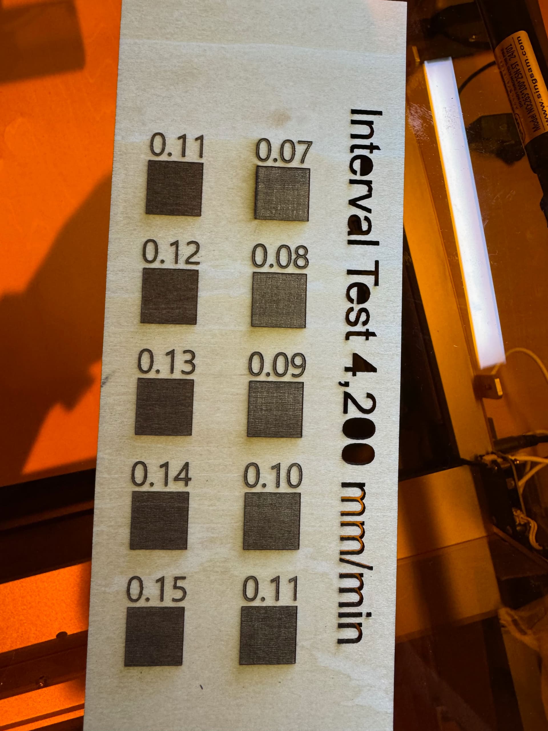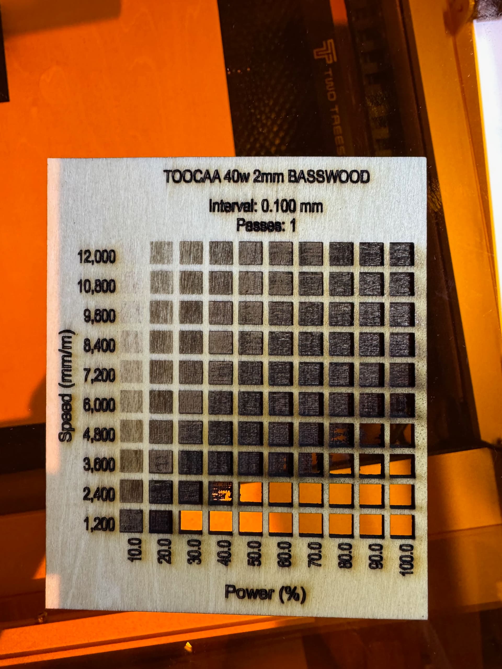 The smoke on the right hand side of the rectangular cut-out shows the direction the smoke is travelling and you can use that as a guide to lower power and increase the number of passes, to reduce cleaning time afterwards or excessive charring on edges.
