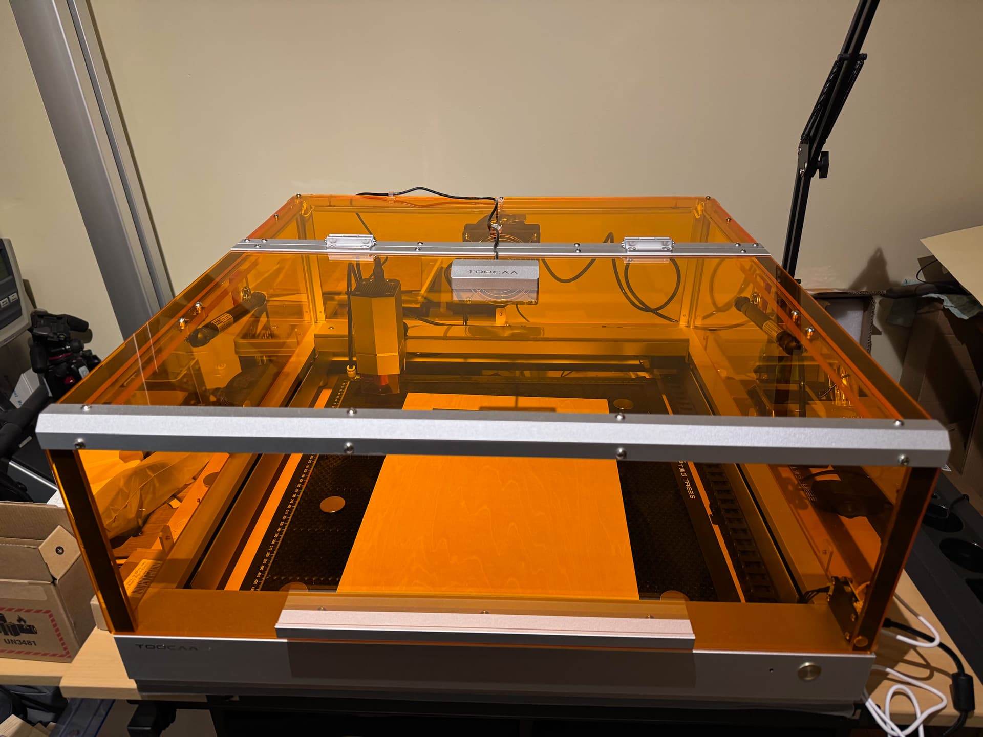 I am thinking of getting a more powerful machine and have shortlisted above two. The Cruelty with air purifier comes at £1,848.00 with a 1.6W module thrown in for free (worth £99.00) and TOOCAA with import taxes is £1,708.00, but it also comes with a camera [edit: I forgot Falcon has integrated camera] a honey comb tray. Both are 40W and have equal size working area.
