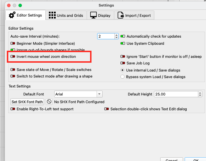 I come from the PC world, I have just got a job where they all use Apple laptops. I have change the scroll wheel to be normal. However what that does is reverse the zoom in MillMage.